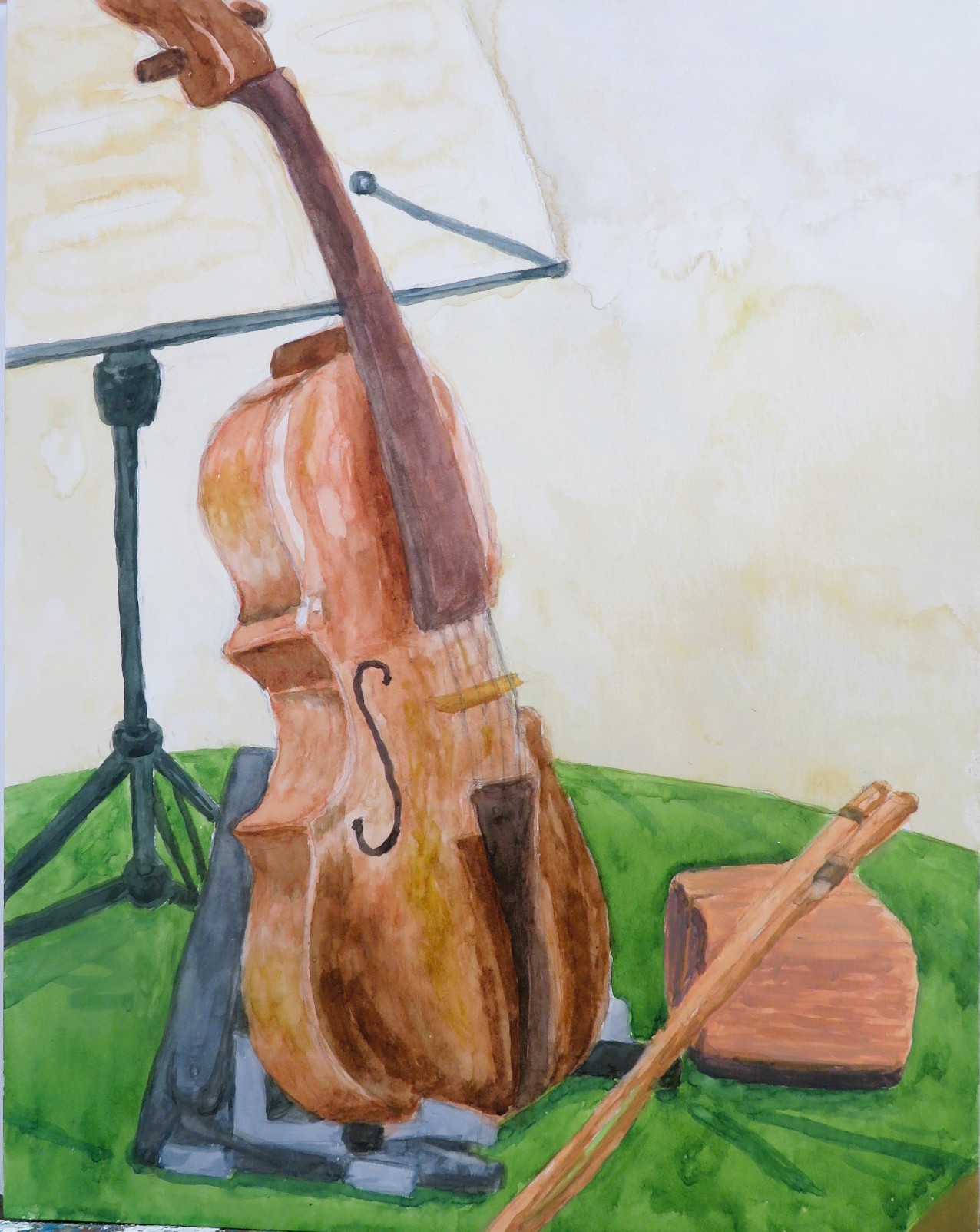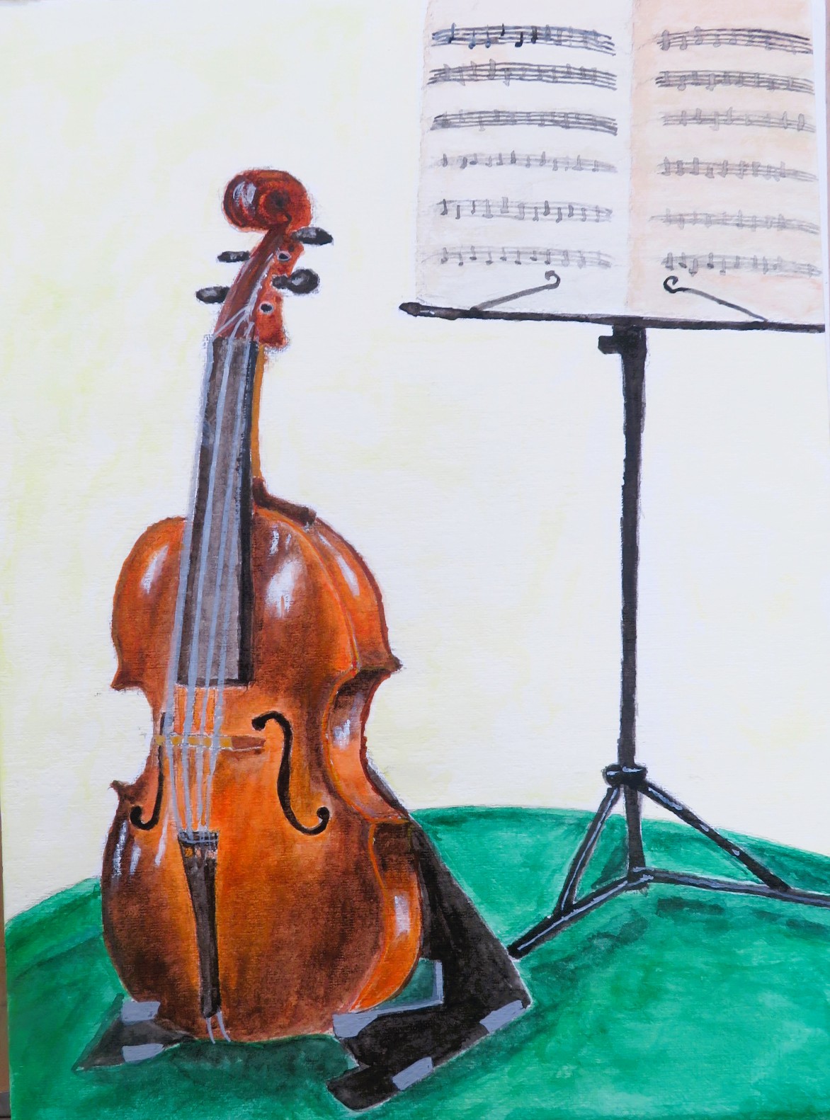 モチーフはバイオリンです。会員のAさん(水彩)、Sさん(水彩)の作品です。