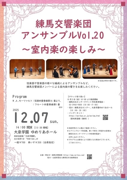 練馬文化センター(ねりぶん)が、あなたのまちに素敵なコンサートをお届けします。