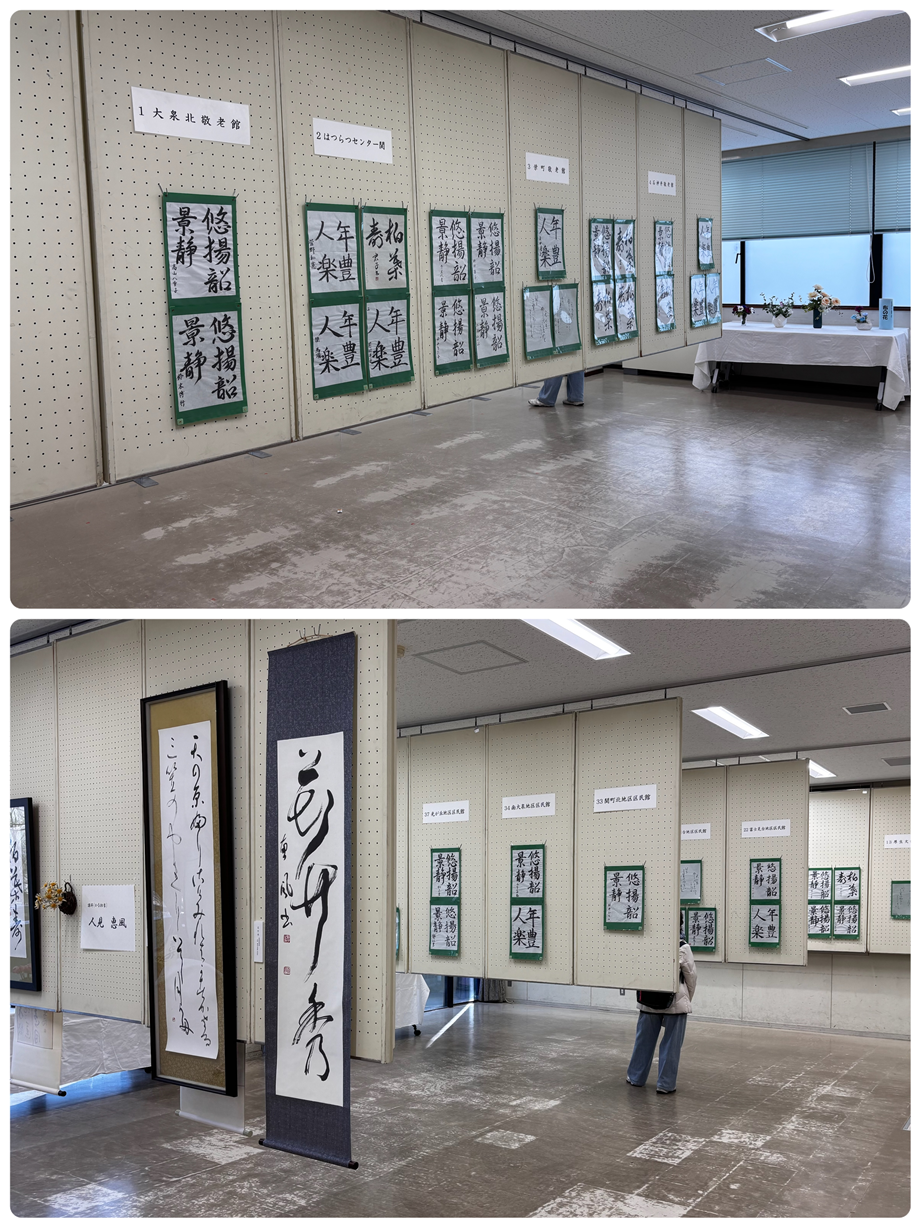 掛け軸や額装されたプロの作品は、まさに圧巻の一言。見学の方々もその気品あふれる表現に足を止め、静かに見入っている姿が印象的でした。